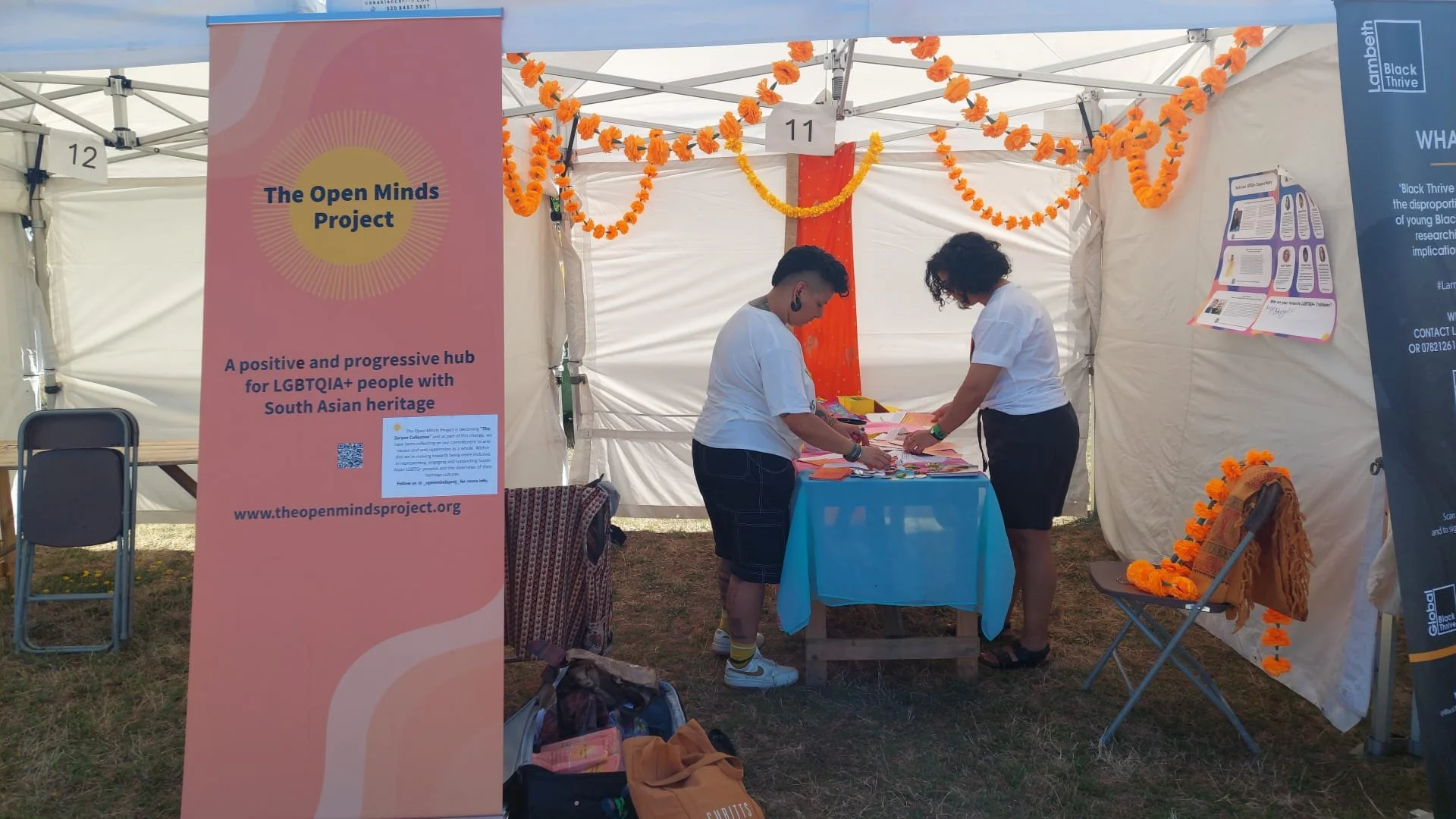 Throughout the day, we offered hourly mindful breathing and movement sessions led by the brilliant Kiki, creating moments of calm and grounding amidst the celebration. Over at the multi-faith tent, Manju facilitated a powerful Queer Community Circle alongside our friends from Imaan and Sarbat—holding space for solidarity across faith and belief, especially in a summer marked by disturbing racist riots and rhetoric.